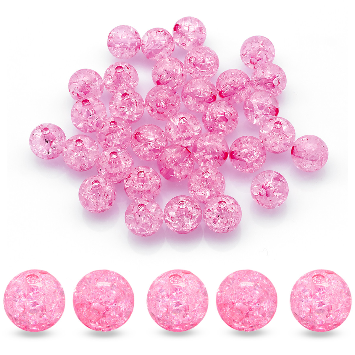 Бусини Акрил Біте Скло, імітація, Круглі, Колір: Рожевий, Діаметр: 8 мм, Отвір 2 мм, приблизно 90 шт./25г
